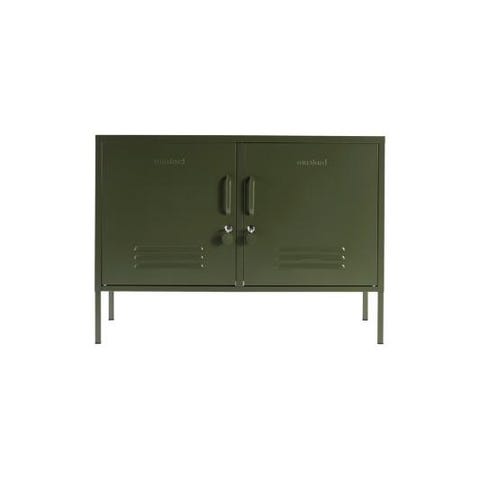Lempinimellä "The Midi" kulkeva keskikorkea peltikaappi tarjoaa erinomaisesti lisää säilytystilaa esimerkiksi eteiseen, keittiöön tai vaikkapa lastenhuoneeseen. Kaunis ja käytännöllinen peltikaappi tuo väriä ja iloa tilaan sellaisenaan tai voit sovittaa sen mainiosti yhteen myös muiden peltikaappien kanssa. Tuotetiedot Väri: Oliivi Varustelu: Kaksi hyllyä (neljässä osassa), joiden paikkaa voi vaihdella sekä kaksi koukkua ovessa. Ovissa on lukot ja mukana toimitetaan avaimet. Mitat: Korkeus 110cm, leveys 85cm, syvyys 40cm. Paino: 23 kg Kaapin kasaus: Kaappi on helppo kasata itse mukana tulevien ohjeiden avulla. Kasaus ei vaadi muita työkaluja, kuin ruuvimeisselin ovenkahvan kiinnitykseen. Taustalevyssä on valmiit reiät ja mukana toimitetaan yleisruuvit, joilla kaapin voi kiinnittää tukevasti seinään. Toimitus: Toimitetaan PostNordin kotiinkuljetuksella. Ihastuttavat Mustard Made peltikaapit Mustard Made on kahden australialaisen siskoksen (Becca & Jess) vuonna 2018 perustama tuotemerkki. Brändi on vasta alkutaipaleellaan, mutta ihastuttavat peltikaapit ovat jo löytäneet tiensä lukuisien ennakkoluulottomien sisustajien koteihin ympäri maailmaa. Pinnijalkapoikien valikoimasta löydät suosituimmat Mustard Made tuotteet kotiasi piristämään ensimmäisenä Suomessa - näitä et vielä muualta saa!