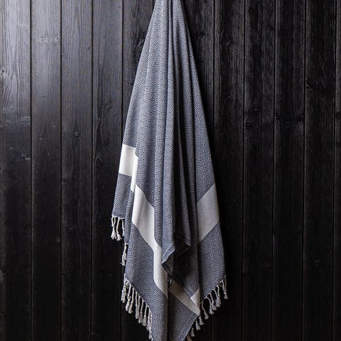 Aito hamam-pyyhe on mainio kaveri retkelle, piknik-koriin tai rantalaukkuun. Hamam -pyyhe painaa vain noin kolmanneksen tavanomaiseen pyyhkeeseen verrattuna, mutta keveydestään huolimatta sillä on erinomainen imukyky, ja se kuivuu todella nopeasti. Aidot hamam-pyyhkeet valmistetaan perinteisesti Turkissa korkealaatuisesta puuvillasta. ILMAINEN TOIMITUS, KUN TILAAT 3 TAI USEAMPIA PYYHKEITÄ! Väri: Musta / Beige / Sininen / Tummansininen / Punainen / Roosa / Viininpunainen / Vihreä, valkoiset kuviot Materiaali: 100 % Puuvillaa Koko: 180 x 95 cm Paino: 320g Valmistusmaa: Turkki Hoito-ohjeet: Pesu 40 % asteessa. Ei rumpukuivausta. Juuret antiikin kylpylöissä Hamam-pyyhe, joka perinteisesti tunnetaan myös peshtemal-pyyhkeenä juontaa juurensa jo antiikin Rooman aikoihin, jolloin ne olivat suuressa suosiossa roomalaisissa ja turkkilaisissa kylpylöissä. Aidot hamam-pyyhkeet on vuosisatojen ajan valmistettu Turkissa. Pyyhkeiden vaihtelevat kuviot kertoivat alunperin miltä alueelta niiden käyttäjä oli kotoisin. Hamam-pyyhe aktiiviseen elämään tai hyggeilyyn Hamam-pyyhe sopii ominaisuuksiensa puolesta erinomaisesti aktiiviseen elämäntyyliin esimerkiksi harrastuksiin, retkeilyyn, patikointiin, kuntosalille tai vaikkapa purjehdusreissulle. Pienen kokonsa vuoksi se on kätevä kuljettaa mukana missä ikinä reissaatkin ja myös kuivuu nopeasti. Hamam-pyyhe on miellyttävän tuntuinen ja se kestää käyttöä. Pyyhe pehmenee muutaman ensimmäisen pesukerran jälkeen ja sen ominaisuudet vain paranevat käytössä. Hamam-pyyhettä käytetään perinteisesti kuitenkin paljon monipuolisemminkin kuin pelkkänä pyyhkeenä. Tyylikkään ja persoonallisen ulkonäkönsä ansiosta sitä käytetään esimerkiksi kaulahuivina suijaamassa tuulelta tai auringonpaahteena. Lisäksi hamam-pyyhe toimii kätevänä pöytäliinana tai istuinalustana picnic-retkellä tai siihen voi kääriytyä kotisohvalla.