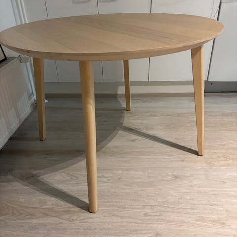 Valkea pyöreä pöytä sekä 4 tuolia. Hyväkuntoinen setti. Kivistössä. Matto myynnissä myös. Se on kk ollut pöydän alla.