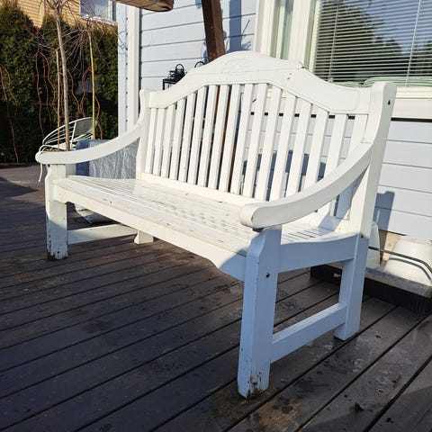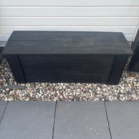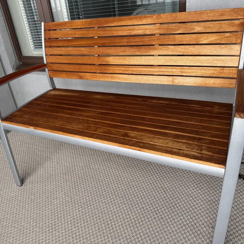 Varattu: Puutarhapenkki musta metallirunkoinen