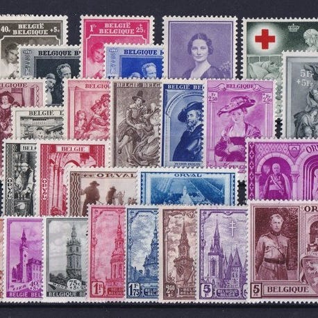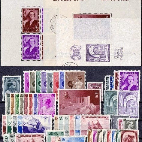 Belgia 1935/1936 - 2 vuosikertaa ilman lohkoja, mutta postimerkit lohkoista. -