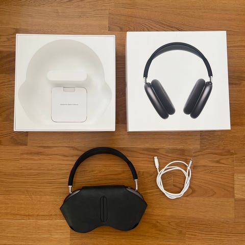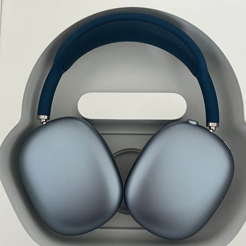 Apple AirPods Max -kuulokkeet, väri valkoinen. Over-ear-mallinen langaton kuuloke malli. Mukana suojakotelo ja pakkaus. Pieniä ulkoisia käytön jälkiä mutta toimivat normaalisti. Postitus onnistuu.