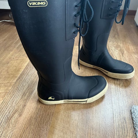 Vikingin tennarityyliset kumpparit. Ehjät ovat, päältä kuluneen näköiset, en ole kokeillut lähteekö ihan kunnon pesulla siistimmän näköiseksi. Konepesussa käyneet. Entinen koiratalous.