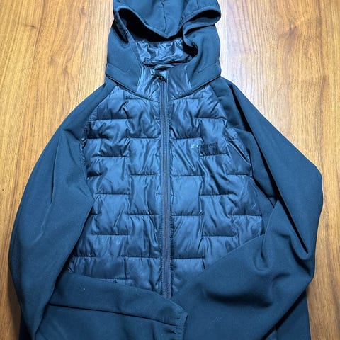 Unisex-mallinen, sopii sekä tytöille että pojille. Materiaalina polyesteri. Takissa on kirjavan sävyinen, tikattu etu- ja takaosa sekä hupullinen malli.