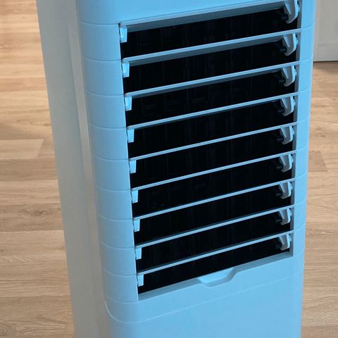 Rullilla oleva puhallintuuletin/ilmanviilennin. Viilentää vedellä