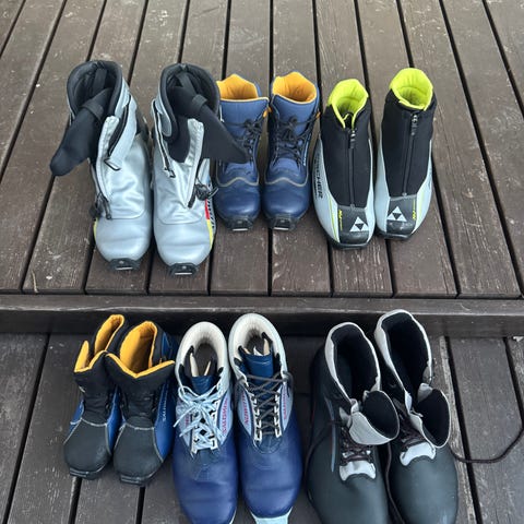 Hiihtosukset, sauvat ja monot seuraavalle.