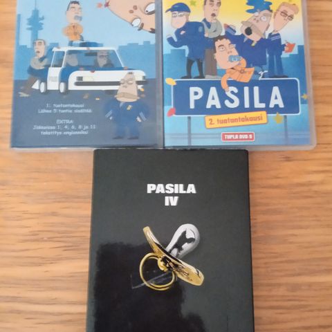 Myydään kuvien mukaiset Pasila -sarjan DVD:t, mukana kaudet 1, 2, 4 ja 5.