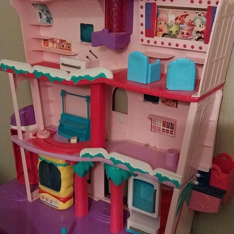 Kaksi leikkitaloa, pitävät ääntä. Toimivat ehjät.