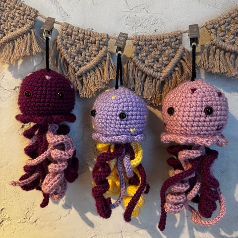 Uusia, käsintehtyjä turvalonkeroita roikkumaan esim. vaunuihin tai sitteriin. Pään halkaisija n. 7,5cm.