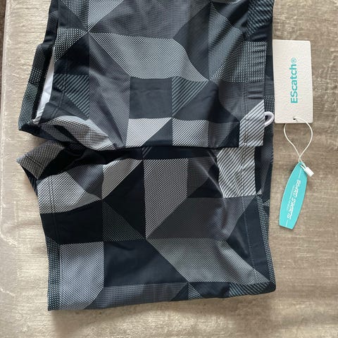 Laadukkaat miesten uimahousut, koko L tai XL, eli vähän isompi L. Väri musta, kankaassa kohokuvioinen kuosipinta. Lahkeet ulottuvat reiden puoliväliin. Vyötäröllä kiristysnyöri istuvuuden säätöön.