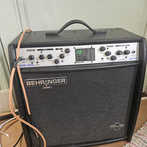 Fender Stage 112 SE kitaravahvistin. Transistorivahvistin, jossa etupaneelissa useita säätimiä äänenmuokkaukseen sekä useita sisääntulo- ja lähtöliitäntöjä. Takapuolella avoin kotelo, jossa yksi kaiutin. Sopii sähkökitaran vahvistamiseen kotikäyttöön, treeneihin tai keikkatilanteisiin, joissa tarvitaan monipuolisia säätömahdollisuuksia. Soi ja pelittää.