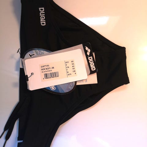 Arena uimahousut lapsille, koko 140. Väri musta, Materiaali on kloorinkestävää uima-asukangasta, joka on suunniteltu säännölliseen käyttöön uima-altaassa tai luonnonvesissä. Sopivat uintiin ja uimaharjoitteluun lapsille, joiden vaatekoko on noin 140 cm. Perusmallinen brief-tyyppinen leikkaus, jossa kiristysnaru vyötäröllä.
