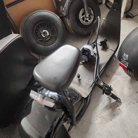 Akku hyvässä kunnossa, aina annettu ladata täyteen ennen käyttöönottoa. Uusi virtalukko sekä satula. Takalokari otettu pois. Siinä reikä, saa kyllä mukaan. Uusi maksaa 35€ netistä.