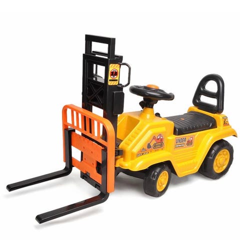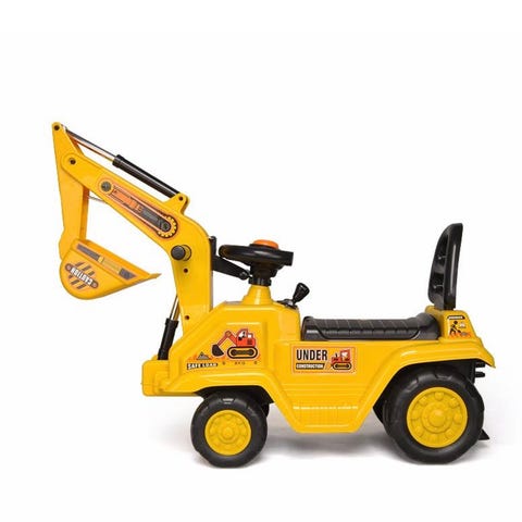 Keltainen hauska malli isolla liikkuvalla kauhalla, ohjauspyörällä ja isoilla renkailla – täydellinen pienelle rakennusmestarille! 🚧💛