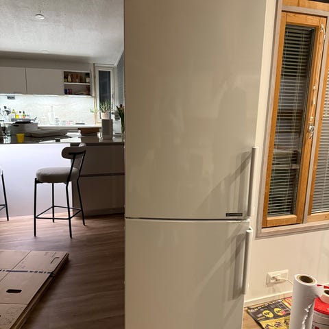 LG-jääkaappi ja - pakastin yhdistelmä jääpalakoneella. Väri ruostumatonta terästä.