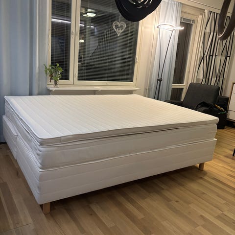Siisti 160 cm jenkkisänky / parisänky. Sänky on napakka. Sänky sijaitsee kerrostalon neljännessä kerroksessa ilman hissiä, omat kantajat mukaan.