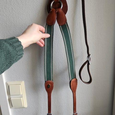 Ohut hevoskokoinen rintaremmi pitkillä liinoilla. Juuri pesty.