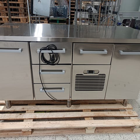 Metos kylmäallas ammattikeittiöön. Altaassa on ruostumattomasta teräksestä valmistettu allasosa ja yläpuolinen hylly. Etupaneelissa on puuverhoilu ja ritilöity teräspaneeli kylmäkoneikolle. Laitteessa on sisäänrakennettu kylmäkoneisto, säätönuppi lämpötilan säätöön sekä virtakytkin. Soveltuu esimerkiksi ravintoloiden, kahviloiden tai linjastojen kylmien ruokien ja juomien esillepanoon ja kylmänä pitoon. Käyttöön tarvitaan verkkovirta liitäntä valmistajan ohjeiden mukaan. Kyselemällä lisäinfoa
