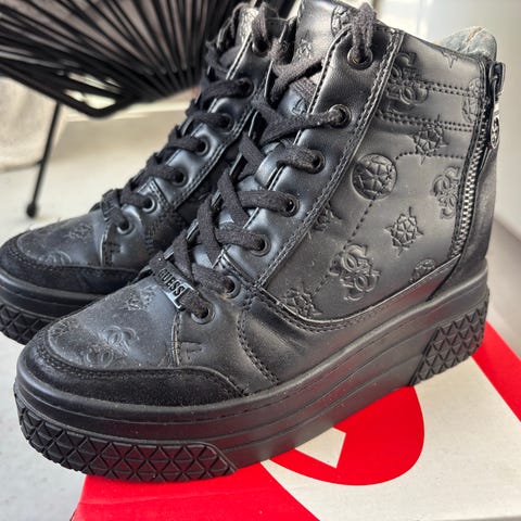 Guess mustat tennarit, 37. Käytettynä joskus ostettu ja paljon käytetty, eli käytetty tyydyttävä kunto ja käytön jälkiä näkyy, kts kuvat. Pk 8,90.