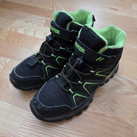 Mustat Starter välikausikengät, koko 38. Pehmeä vuori, sopii viileämpäänkin. Pohjallisen pituus n. 24 cm. Nämä ovat olleet paljon käytössä ja käytön jälkiä näkyy, pesty pesukoneessa.