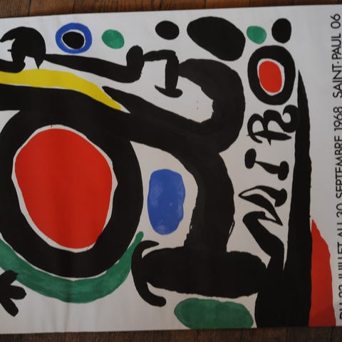 - Joan Miró (jälkeen). 2 valtuutettua offsetlitografiaa paksulle sileälle paperille (noin 300 g/m² - viittaa paperin paksuuteen/tiheyteen).- 1999. Tekijänoikeus: Successió Miró, SIAE- Koko jokaiselle: 50 x 100 cm.- Levy signeerattu.- Takakannessa leima.- Kunto: erinomainen. Ei koskaan kehystetty, ei koskaan ollut esillä.- Toteutettu Joā Mirón uran kypsässä vaiheessa, Le Chef des Équipages ja Le Sarrasin à l’étoile (1973) ilmentävät taiteilijan ilmeeltään tunnistettavaa visuaalista kieltä: poeettinen universumi, jossa kalligrafinen piirto, biomorfinen muoto ja primaariväri ovat tasapainossa. Nämä kokoelmat kuuluvat hetkeen, jolloin Miró, kansainvälisesti juhlittu ja jo maailman johtavissa instituutioissa esitelty, tiivisti sanomansa välttämättömimpiin ja voimakkaimpiin merkkeihin, saavuttaen saman ikonisen välittömyyden kuin Pablo Picasson ja Henri Matissen myöhäisissä töissä.- Lämpimät mustat rakenteet toimivat sekä hahmona että arkkitehtuurina, kiinnittäen pinnan samalla kun räjähtävät kromatiikkaliuskat punainen, sininen, keltainen ja vihreä saavat värähdellä koko kompositiossa. Tämä spontaaniuden ja kontrollin jännite asettaa nämä teokset suoraan dialogiin Abstraktin ekspressionismin eleellisen vapauden kanssa sekä myöhemmin taiteilijoiden kuten Alexander Calder, Jean Dubuffet ja jopa nykytekijöiden kuten Keith Haring ja Takashi Murakami arvostaman graafisen selkeyden kanssa.- Mirón kuvitus, kirjoittamisen ja konstellation välillä leijuva, herättää saman unenomaisen ulottuvuuden, joka yhdistää surrealistismin moderniin muotoiluaestetiikkaan. Leijuvia tähtiä, naamamaisia kasvoja ja totemmaisia siluetteja tulkitsee nämä painoviivapiirrokset erittäin koristeellisiksi, erinomaisesti sopiviksi moderneihin sisätiloihin, kuratoituihin arkkitehtonisiin tiloihin ja kokoelmiin, joissa ne resonoivat Wassily Kandinsky, Andy Warhol ja Marc Chagallin teosten kanssa.- Nykyään hänen teoksiaan etsitään maailmanlaajuisella taidemarkkinalla, ja ne ovat säännöllisesti suurissa huutokaupoissa ja blue-chip-kokoelmissa merkityksensä ja erinomaisen visuaalisen vaikutuksensa vuoksi.- Lausuen litteraalista abstraktiota, Välimeren elinvoimaa ja ajattomasti leikkisää, Le Chef des Équipages ja Le Sarrasin à l’étoile ovat kaksi ikonista esimerkkiä Mirón työlle, joiden dekoratiivinen läsnäolo on vahva ja jotka sopivat erinomaisesti sisätiloihin, joissa taide, design ja arkkitehtuuri kohtaavat.