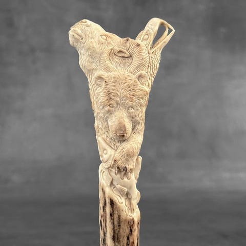 Kaiverrus, A Bear Carving from a Deer Antler on a custom stand - 18 cm - Deer