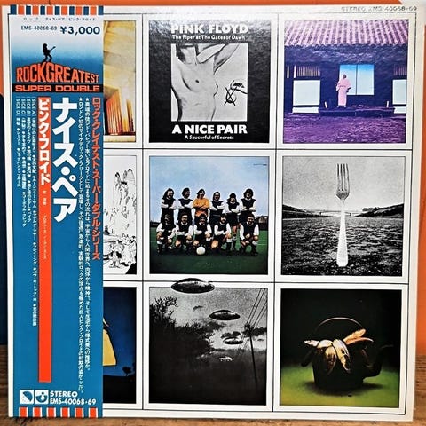 ★★★ Pink Floyd – Atom Heart Mother (with OBI)The original album cover, designed by artist collective Hipgnosis, features a Holstein Friesian cow standing in a pasture, with no lyrics or other clues as to what the record might say.Some later editions added the title and artist name on the cover.This concept was the group's response to the psychedelic space rock imagery associated with Pink Floyd at the time of the album's release. The band wanted to explore all types of music without being limited to any particular image or performing style. They therefore demanded that their new album have "something simple" on the cover, which is ultimately the image of a cow.Storm Thorgerson, inspired by Andy Warhol's famous "cow wallpaper," said he simply drove to a rural area near Potter's Bar and photographed the first cow he saw.The cow's owner identified her name as "Lulubelle III". Additional cows appear on the reverse, again without text or title, and on the inside of the hinged cover.Atom Heart MotherWritten-By – Gilmour, Mason, Wright, Waters, GeesinTracklist:A.a Father's Shout A.b Breast Milky A.c Mother Fore A.d Funky Dung A.e Mind Your Throats Please A.f Remergence B1 IfB2 Summer '68B3 Fat Old SunAlan's Psychedelic BreakfastB4.b Sunny Side Up B4.c Morning Glory 970 an EMI RecordingMade by Toshiba EMI, Ltd., JapanRecorded at EMI Studios - Abbey Road.Includes OBI & 6 page black & white insert with images, Japanese liner notes, reprints in English of 1970 reviews (probably from British music press?) of the album and the Bath & Hyde Park concerts ("Floyd, plus grunting apes...") and lyrics in English and Japanese.Matrix / Runout (Label side A): SHVL-781AMatrix / Runout (Label side B): SHVL-781BConditionLP / Near Mint Mint (well-kept, wonderful) few very light surface hairlines from handling, purely visual and not affecting playbackOBI /Front & Back / Near Mint ( light folds on top and backside)Cover /Near Mint/ (wonderful)Booklet / Excellent (light wrinkles, and few light apota)Please understand that there are individual differences in perception★ Another "Must-Have"! From The Greatest Psychedelic Rock Band Ever In Nice-Condition ★★★★Another Prog-Rock "Must-Have"! For Collectors ★★★★★★ For every rare single & LP I add a new inner sleeve with acid-free plastic so that you can enjoy the singles & LPs for a long time★★★ You will receive all of your valuable auctions in a special LP box so that nothing can happen to your LP during transport (see pictures)★★★ Each LP/Single is washed again with a special record washing machine (see picture) before it is sent (this machine is of course not included in the scope of delivery)★★★ Every week we have many interesting Collector LPs/CD´s...Memorabilia’s ...on offer, just go to the following button and you will see all our offers. An offer exclusive from the seller :BLACKGOLD-MEMORABILIA & REAL TO REALThank´s for your interest.Check out our other rare items in current and future Auctions at Catawiki★★★ No Delivery to Cran Canaria
