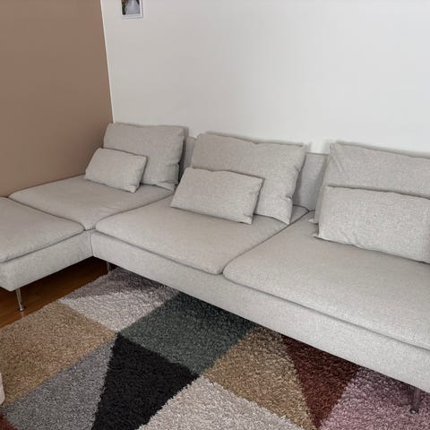 Myydään Ikean Nockeby-divaanisohva (3 hengen) ja Söderhamn-rahi (sohvan edessä). Sohvan kunto hyvä. Kankaat irroitettavat, ehjät, pesukoneessa pestävät. Vaalean harmaa kuosi, rahissa hieman eri, ei juuri erota toisistaan. Jämäkkä istua, mukava löhöillä/nukkua. Käytössä olevat kankaat pesty 4 kertaa, kauppaan kuuluu uudet, paketissa olevat kankaat. Söderhamn-rahin kankaan vetoketju rikki, kankaat myös irroitettavat ja pestävät, rahi ehjä. Kankaita myydään vielä Ikeassa. Mitat L 277 cm, S 85 cm, divaanin syvyys 175 cm, istuinkorkeus 45 cm. Sohva ostettu v. 2018, rahi n. v. 2019.