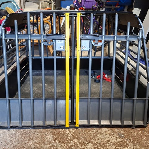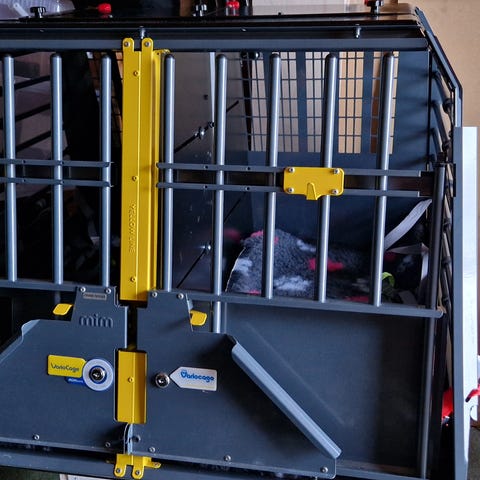 Käytetty, mutta hyvässä kunnossa. Myydään auton vaihdon vuoksi. Ollut Volvo V70:ssä ja käytetty saksanpaimenkoiralle. Irrotettava väliseinä ja molemmat avaimet tulevat mukaan.