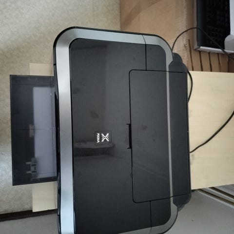 Canon Pixma tulostin musta. Soveltuu asiakirjojen ja kuvien tulostamiseen sekä skannaamiseen kotona tai toimistossa. Laitteessa on ylhäältä avautuva paperinsyöttö ja etupuolella tulostelokero.