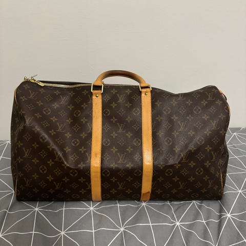 Myydään Helsingin LV liikkeestä ostettu Louis Vuitton keepall 55 bandouliere laukku. Laukun toisessa reunassa on pieni jälki, näkyy yhdessä kuvassa. Muuten laukku on erinomaisessa kunnossa. Laukkua on käytetty vain muutama kerta.