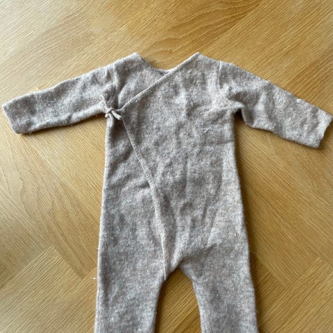 Luonnonvalkoinen villahaalari ja ensimyssy.