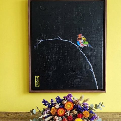 GuS, ranskalainen taiteilija, jonka teokset ovat maailmanlaajuisesti tunnettuja, teoksia on huutokaupattu ja palkittu lukuisissa kilpailuissa. Hänen teoksensa ovat todellisia kadun taiteen pienoiskohtia. Viimeisimmäksi käsin maalatuksi kankaalle 50 × 40 cm maalauksesta huokuu seinätaiteen eläinaiheinen runous. Markkinansa on vankka: hän luo ainutlaatuisen visuaalisen vastakkainasettelun. Hän asettelee eläinkunnan hyperrealistisen, pakonomaisen tarkkuuden graffitin ilmaisullisen raivon ja mainos-Pop-Rock -ikonografian brutaalisuuden kanssa. Taiteilijan käsialalla allekirjoitettu aitoustodistus toimitetaan. Jokainen maalaus on kiireellinen peili, joka kyseenalaistaa paikkamme sekä elävän olennon aseman urbaanissa maailmassa. Toistuvat aiheensa – eläinsuojelu ja Vanitas-teemat – osoittavat voimakasta pohdintaa. Salaisuutensa ja voimansa: GuS on daltonisti. Tämä piirre on pakottanut hänet purkamaan väriä koskevat säännöt luodakseen rohkean visuaalisen kielen, joka toisinaan päätyy abstraktioon. Osta GuS saadaksesi filtteröidyn, uudelleen luodun ja markkinoiden ylistämän maailmankuvan.