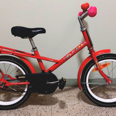 Nopsa lasten polkupyörä, 12" rengaskoko. Punainen runko, musta satula ja ohjaustanko. Pyörässä on apupyörät, etukori sekä takatavarateline. Sopii pienelle lapselle ensimmäiseksi polkupyöräksi, kun käytössä on vielä apupyörät ja matala runko helpottaa kyytiin nousemista.