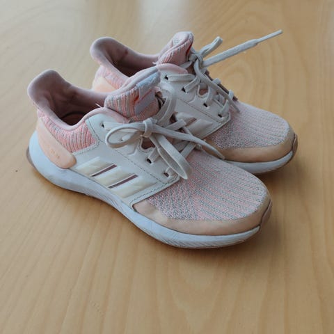 Adidas lasten lenkkarit, koko 30. Väri musta valkoisilla yksityiskohdilla. Päällinen hengittävää verkkokangasta, nauhakiinnitys.