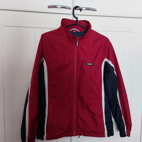 Retro - Rukka tuulipuku 80-90-luvulta, tummansininen, vaalea ja valkoinen väreillä. Koko 38. Voin lähettää, tällöin postikulu ostajalle.