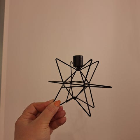 Myydään kaksi seinään kiinnitettävää kynttilänjalkaa. Kynttilänjalat ovat väriltään mustat.