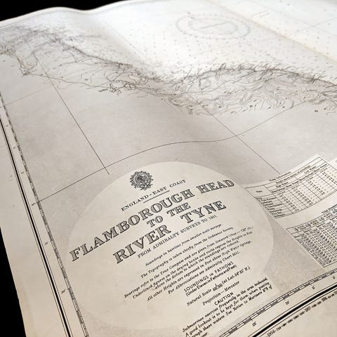 Kartta kuvaa Koillis‑Englannin rannikkoa Hartlepoolista Blythiin, aluetta joka oli 1900‑luvun alussa yksi Britannian tärkeimmistä teollisuus- ja satamavyöhykkeistä. Syvyyslukemat on merkitty fathomeina, kuivuvien alueiden korkeudet erikseen ja kartta sisältää yksityiskohtaiset vuorovesitaulukot Blythin, Tynen, Sunderlandin, Seahamin ja Hartlepoolin satamille. Nämä tiedot olivat ratkaisevia navigoinnissa rannikkoalueella, jossa hiekkapenkereet, kivikot ja voimakkaat vuorovesivirtaukset tekivät lähestymisistä haastavia.