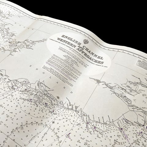 Muuta: Tämä alkuperäinen Admiraltyn merikartta on painettu vuonna 1941, toisen maailmansodan keskellä, mutta se perustuu vuoden 1901 ensikaiverrukseen. Kartta on ollut aktiivisessa käytössä pitkään, mistä kertovat lukuisat viralliset korjaukset 1950–1960‑luvuilta. Se on siis elänyt mukana merenkulun arjessa yli puolen vuosisadan ajan.