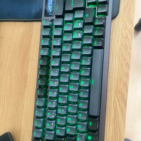 Näppäimistö on melkeen kuin uusi ja saa hiiren liitettyä näppäimistöön, ainoo vika on että äänirulla ei toimi, näppäimistöön saa asennettua sovelluksen josta saa vaihettua esim eri värejä näppäimistöön.