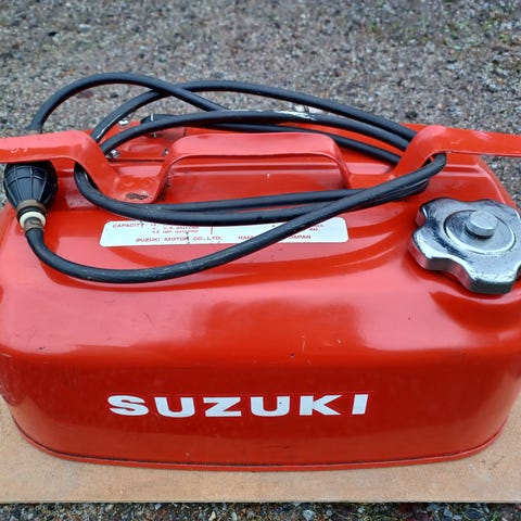 Suzuki ja Honda bensiinikanisterit punainen muovi. Kanisterit on valmistettu kovasta muovista ja niissä on kantokahva sekä liittimet polttoaineletkulle. Sopivat esimerkiksi perämoottorin tai muun polttomoottorilaitteen ulkoiseksi polttoainesäiliöksi. Punainen väri helpottaa kanisterien erottamista ja merkitsee bensiinin säilytystä. Kanistereissa on valumuottiin merkitty valmistajan nimi ja käyttöohjeita koskevia tekstejä.