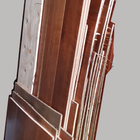 Purettua kirsikkapuuparkettia, erikokoisina levyinä