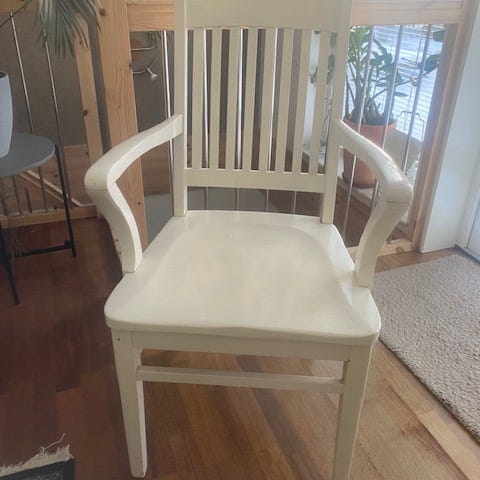 Elokuvan somisteena käytetty koristeleikattu, uniikki puutuoli, istuinosa narua.