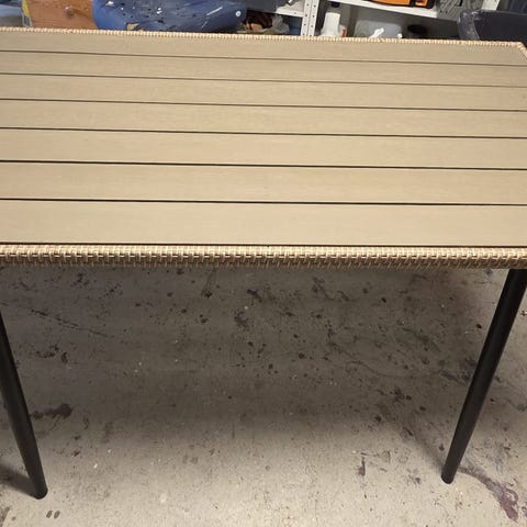Käytönjälkiä varmasti löytyy, mutta on vielä kelpo pöytä seuraavalle.