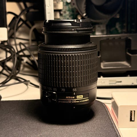 Lähes uudenveroisessa kunnossa oleva Nikkorin kevyt telezoom kuvanvakaajalla.