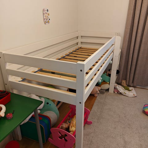 Patjan koko 90x200. Sängyn ulkomitat 210x94,5 ja korkeus 152cm korkeimmasta kohdasta.