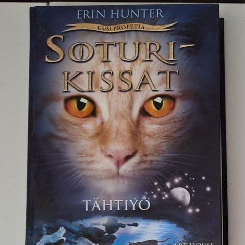 Myydään soturikissojen neljä ensimmäistä saagaa ja pari viidennen saagan kirjaa. Osa on kovakantisia suurinosa kuitenkin pokkareita. Löytyy myös erikoisjulkaisuja esim. Sinitähden tarina, Tulitähden tehtävä, Taivasklaanin kohtalo. Voin myydä yksittäisiä saagoja jolloin hinta 40e.Erikoisjulkaisuja en mielellään myy yksittäin mutta jos päästään hinnasta sopuun niin sekin onnistuu. Hinta on koko setille mutta siitä voi esittää myös oman näkemyksen. Ja yksittäisistä saagoista yms voi tulla tarjoamaan. Postitus onnistuu ostajan piikkiin.