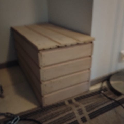 Ollut pitkään käytössä. Laatikostot toimivat hyvin, mutta käytönjälkiä on paljon. Osan saa peitettyä vaikka mustalla/valkealla tussilla.