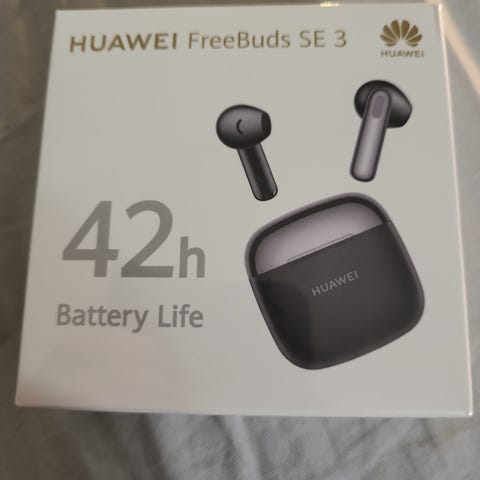 Huawei FreeBuds SE 3 -langattomat nappikuulokkeet mustassa värissä. Tuli muutama viikko sitten kaupanpäälliseksi liittymänvaihdossa. Kerran kokeiltu, mutta ei sovellu omalle korvalle.