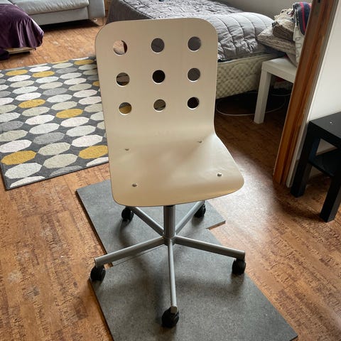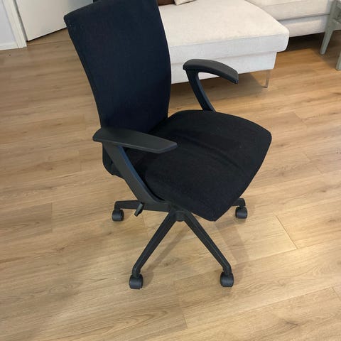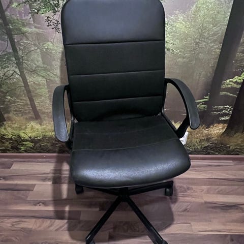 Suoraan käytöstä hyvin toimiva toimistotuoli. Päällinen keinonahkaa.